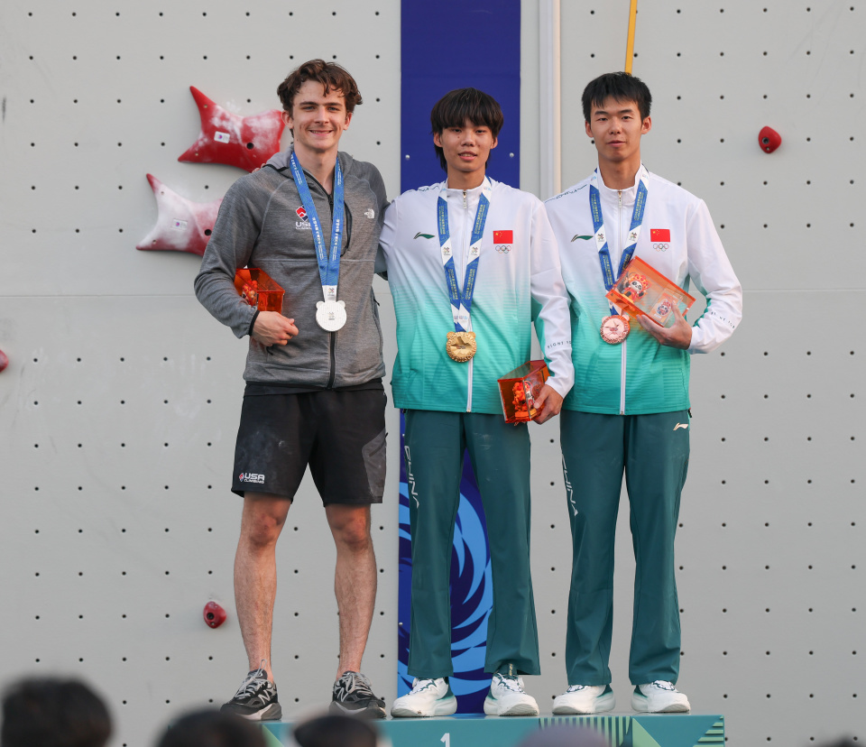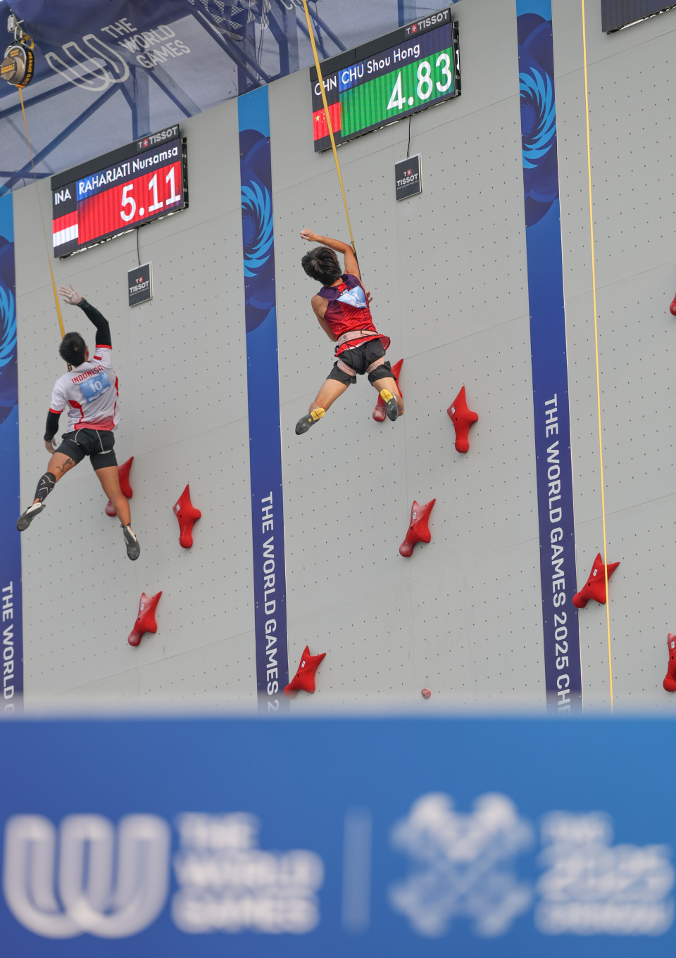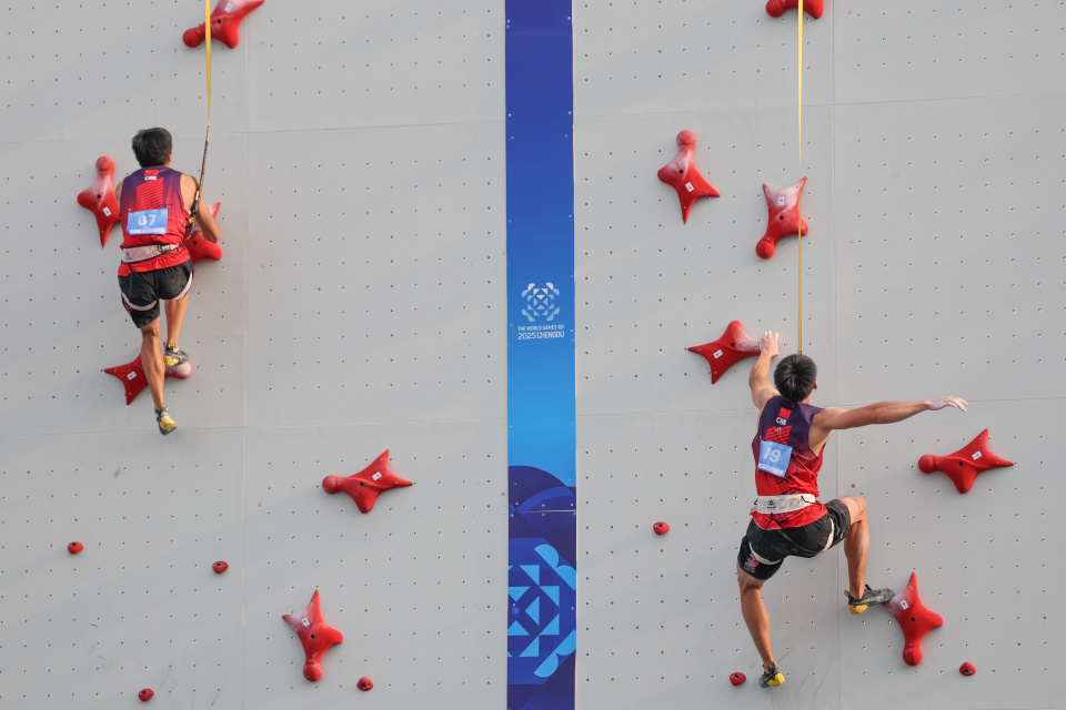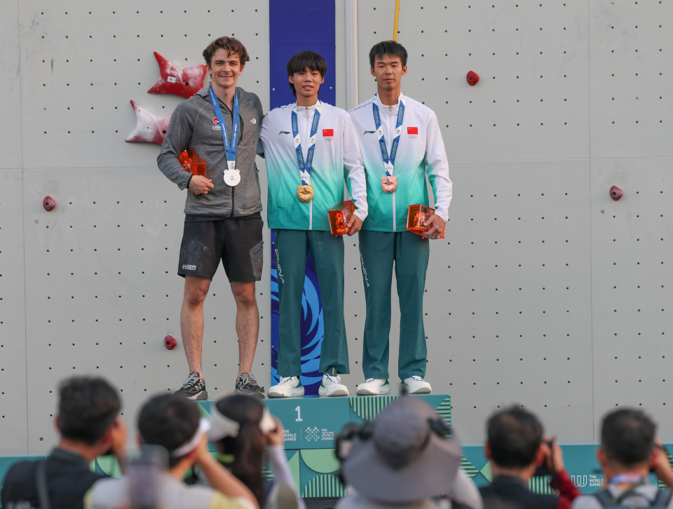 当日,2025年成都世运会攀岩男子速度个人赛举行,中国选手储守宏夺得冠军,美国选手沃森、中国选手龙见国分获亚军和季军。